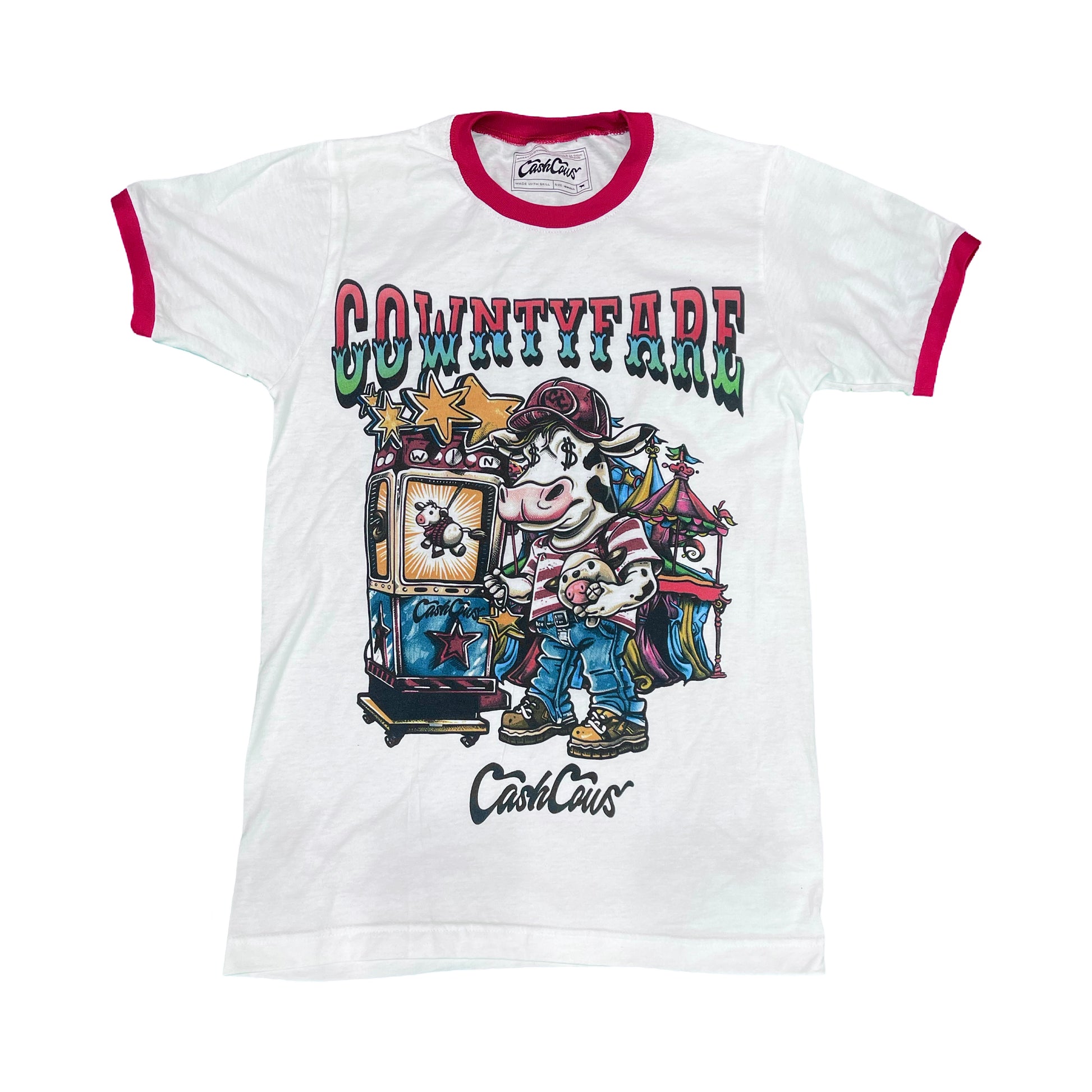 Experience the fun of the county fair with our Cownty Fare T-shirt Collection! A playful spin on cows, indulge in cotton candy, and enjoy the carousel and fair games with our unique t-shirts. Made of comfortable cotton, these t-shirts are a must-have for any fair enthusiast.