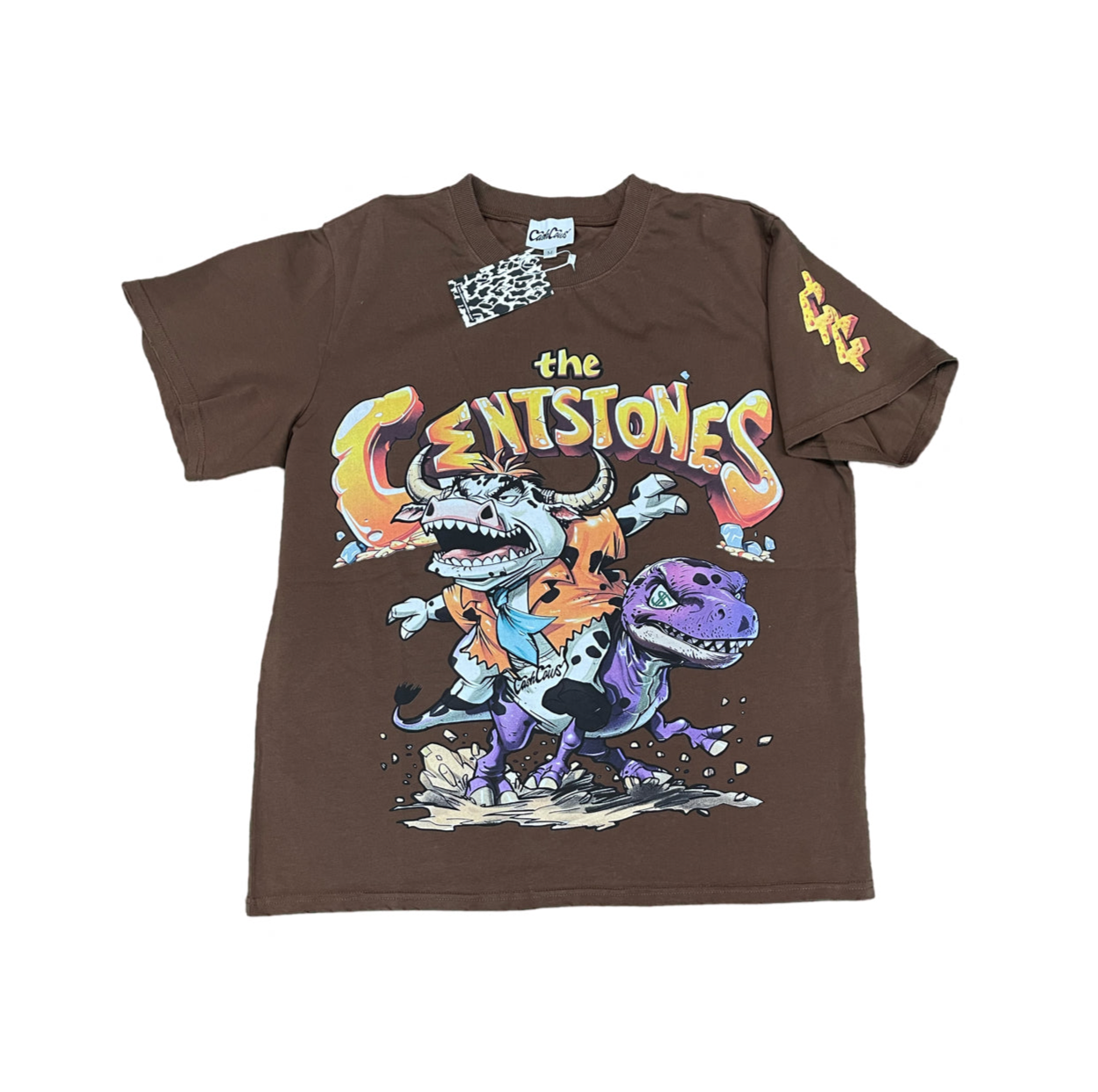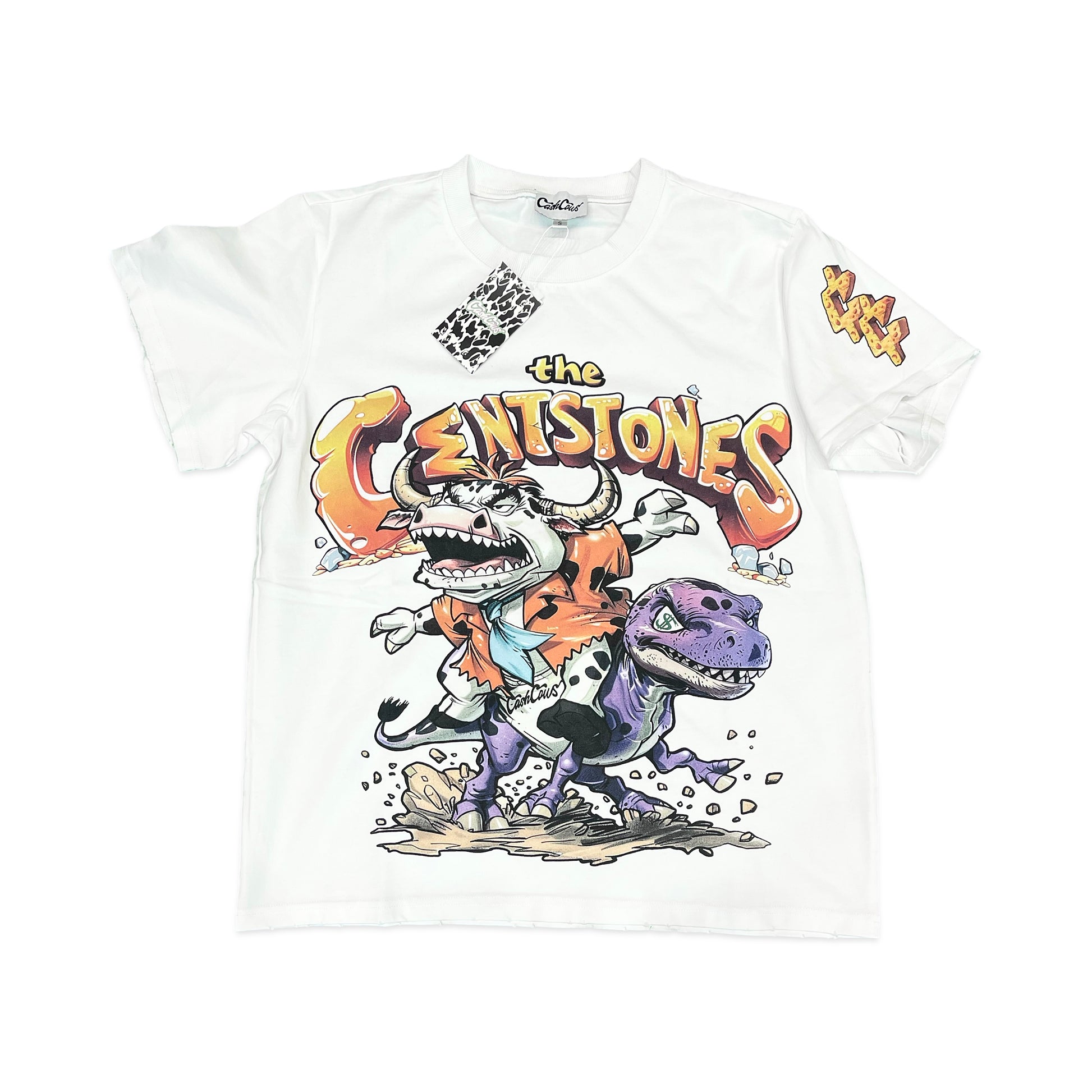 The Centstones Fred & Rex T-shirt, featuring a playful twist on the beloved characters of Fred and Dino from The Flintstones as adorable cows. Made with high-quality materials, this t-shirt will add a fun and unique touch to your wardrobe. Perfect for any fan of the classic cartoon series.